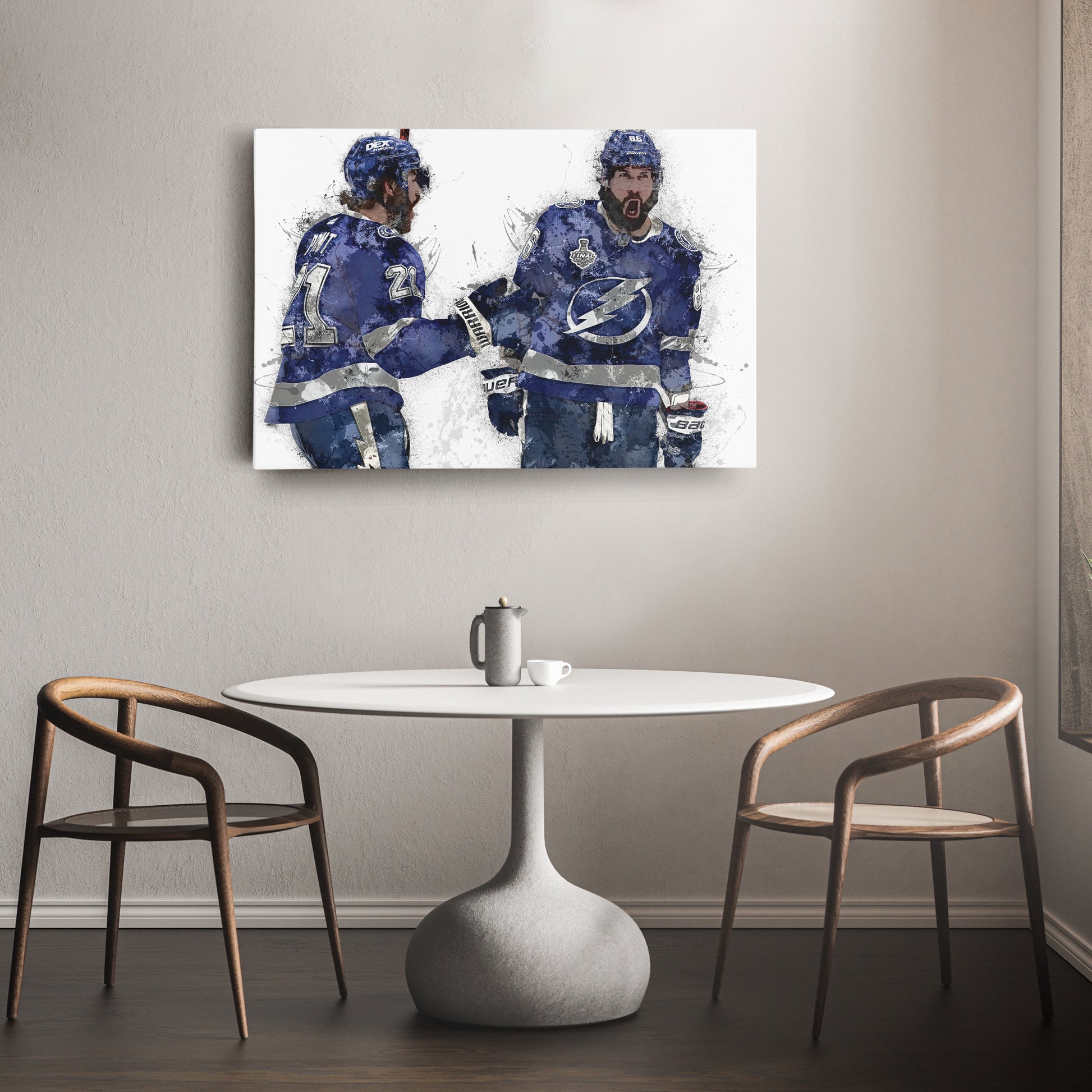 Celebrate the brilliance of Brayden Point and Nikita Kucherov — the heart of Tampa Bay’s offense — with this dynamic canvas print built for champions.