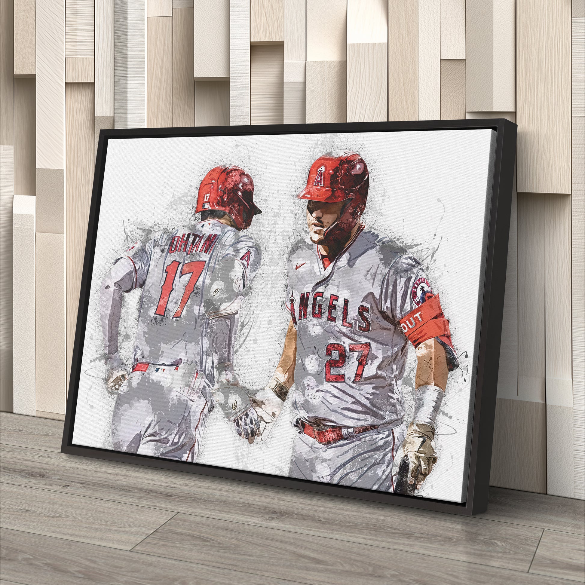 This premium-quality canvas captures both legends in action — Ohtani launching a home run or firing a strike, Trout tracking down a fly ball or smashing an RBI — framed in the Angels’ classic red, white, and navy. Whether displayed in a sports-themed room, office, or fan cave, this piece brings pride, energy, and baseball excellence to your décor.